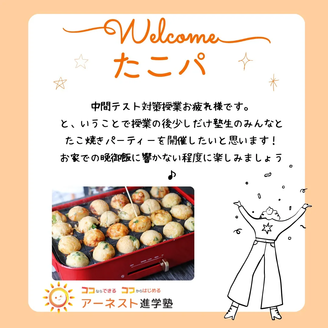 アーネスト進学塾の定期テスト対策、日曜日講座のご案内📚✨テス... アーネスト進学塾の定期テスト対策、日曜日講座のご案内📚✨テスト前の日曜日、頑張って勉強するために特別な機会をご用意しました!🏫💪自宅だとついつい気が散っちゃう、そんな時はぜひお友達と一緒にアー…